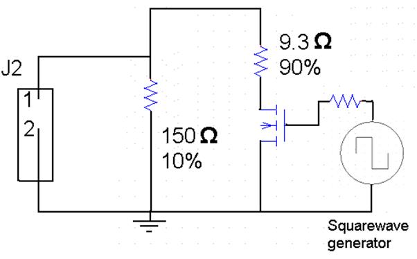 The 150Ω resistor must dissipate 1.5W, the 9.3Ω resistor must dissipate 24W. Use an IRG4BC20S MOSFET for the transistor. The signal generator was the hp8005 pulse generator set to provide a 0V – 10V, 1000Hz, 50% duty cycle square wave.