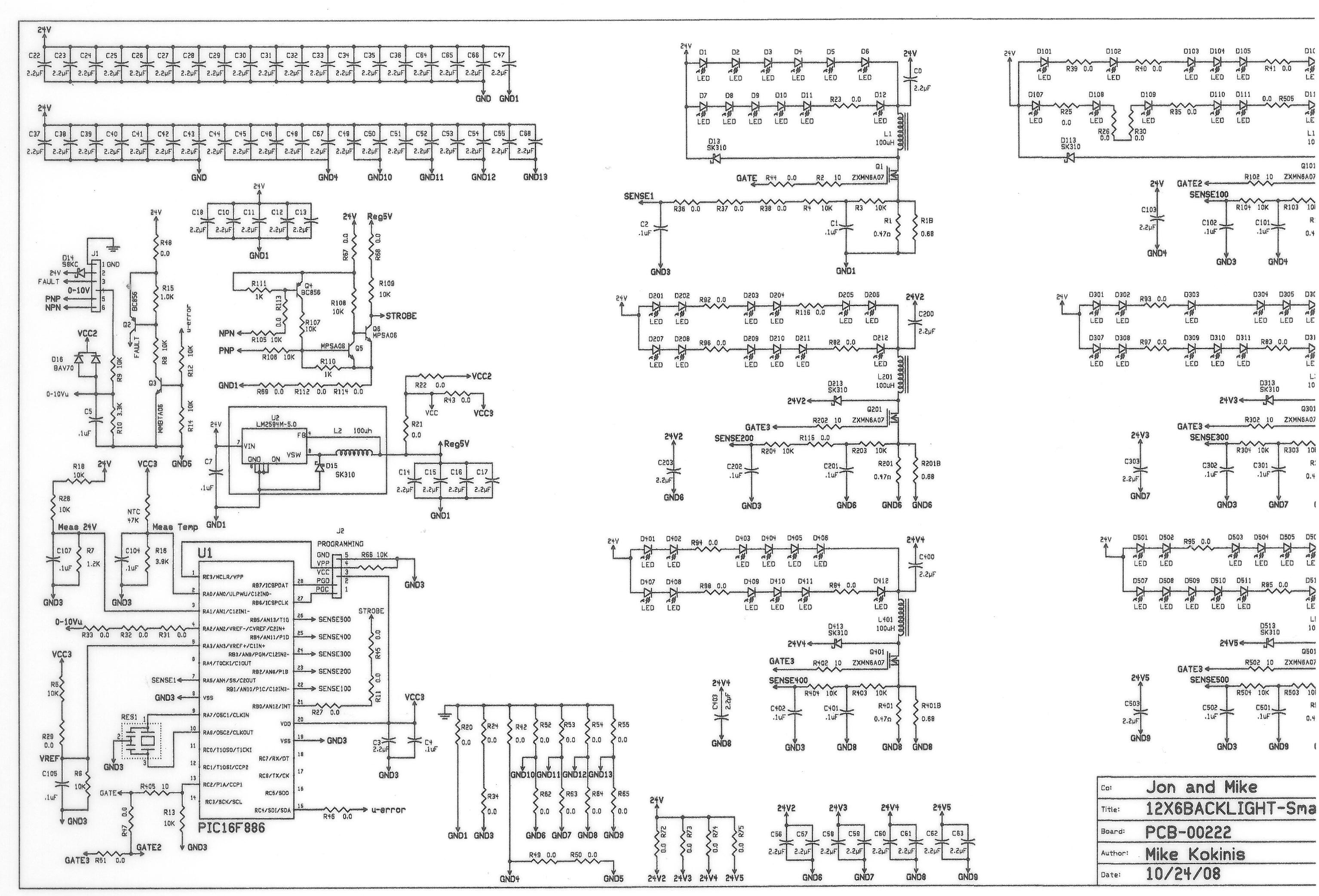 This is a precision back light for the quality control of the bottling industry. A highly controlled light source was needed. Bottles on an assembly line would pass in front of the light, and a camera would sense the light going through the bottles. Software would then be able to detect whether there was a defect in the bottle. This project required intensive work with a programmable camera and the Framework software to trigger the light and camera simultaneously. Since the LED light output changes with temperature, the unit would monitor the temperature of the Aluminum substrate of the PCB and adjust the duty cycle of the LEDs accordingly. I was the only engineer responsible for this project from beginning to end.